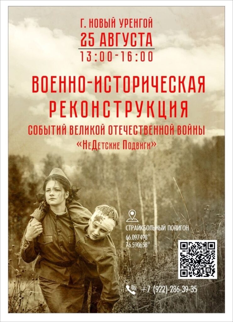 Военно-историческая реконструкция событий Великой Отечественной войны «НеДетские Подвиги» в Новом Уренгое состоится 25 августа. Организаторы приглашают жителей и гостей округа,…
